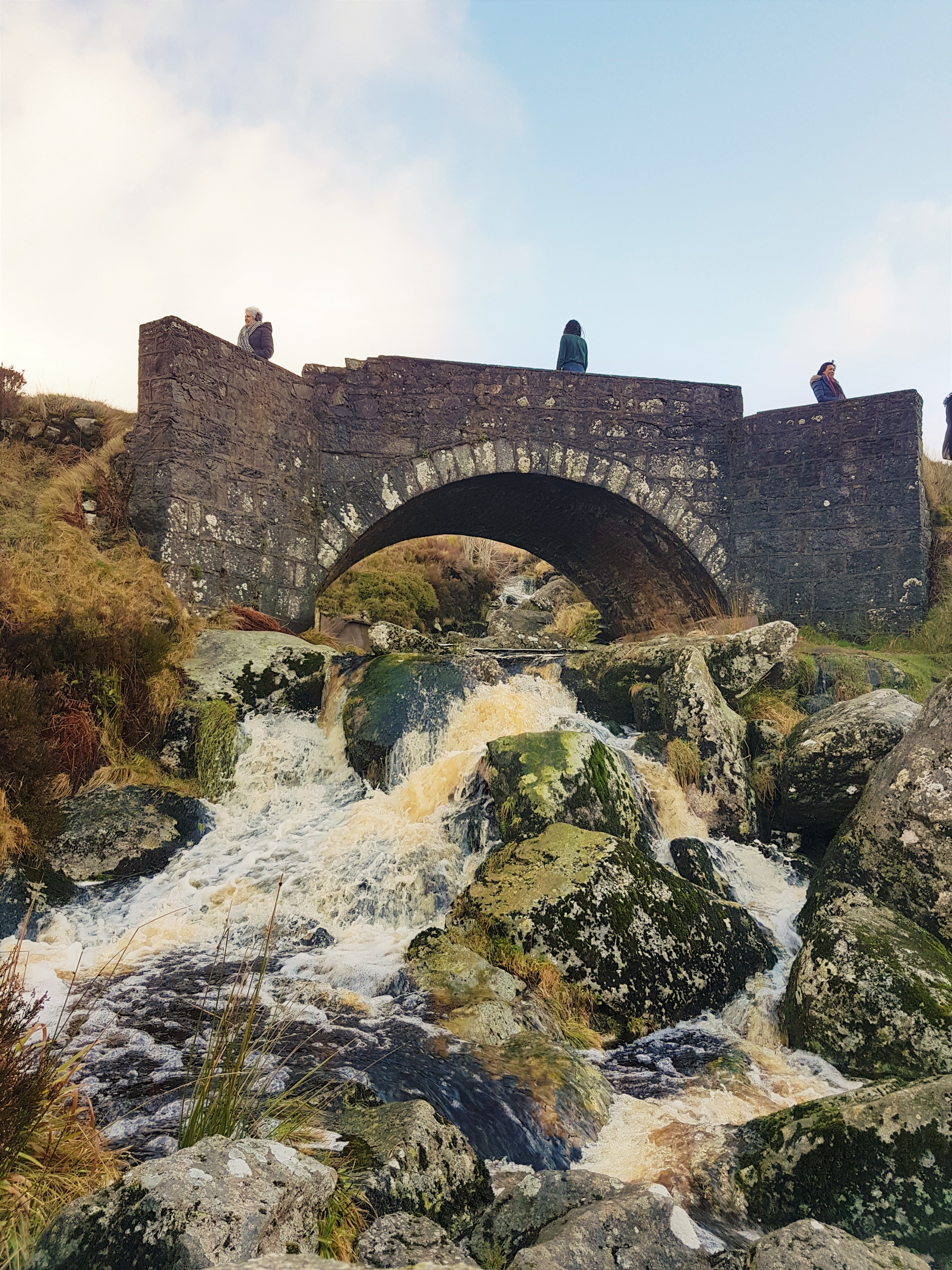 De acordo com o motorista existem pessoas que participam nesta excursão apenas para visitarem esta ponte. Esta ponte é famosa porque foi local de filmagem do filme “PS. I Love You“, um romance dramático realizado em 2007 com Hilary Swank as Holly Reilly-Kenned e Gerard Butler as Gerry Kennedy. No filme é nesta ponte que o casal se conhece e por isso local famoso e de paragem obrigatória a quem vá até às montanhas de Wicklow, mesmo que não tenham visto o filme ou não gostem dele. Eu, apesar de ter visto o filme, não vim no passeio por causa da ponte, mas achei o local muito bonito e sim, talvez até se possa dizer que é um local romântico, se esquecermos os imensos turistas à volta.