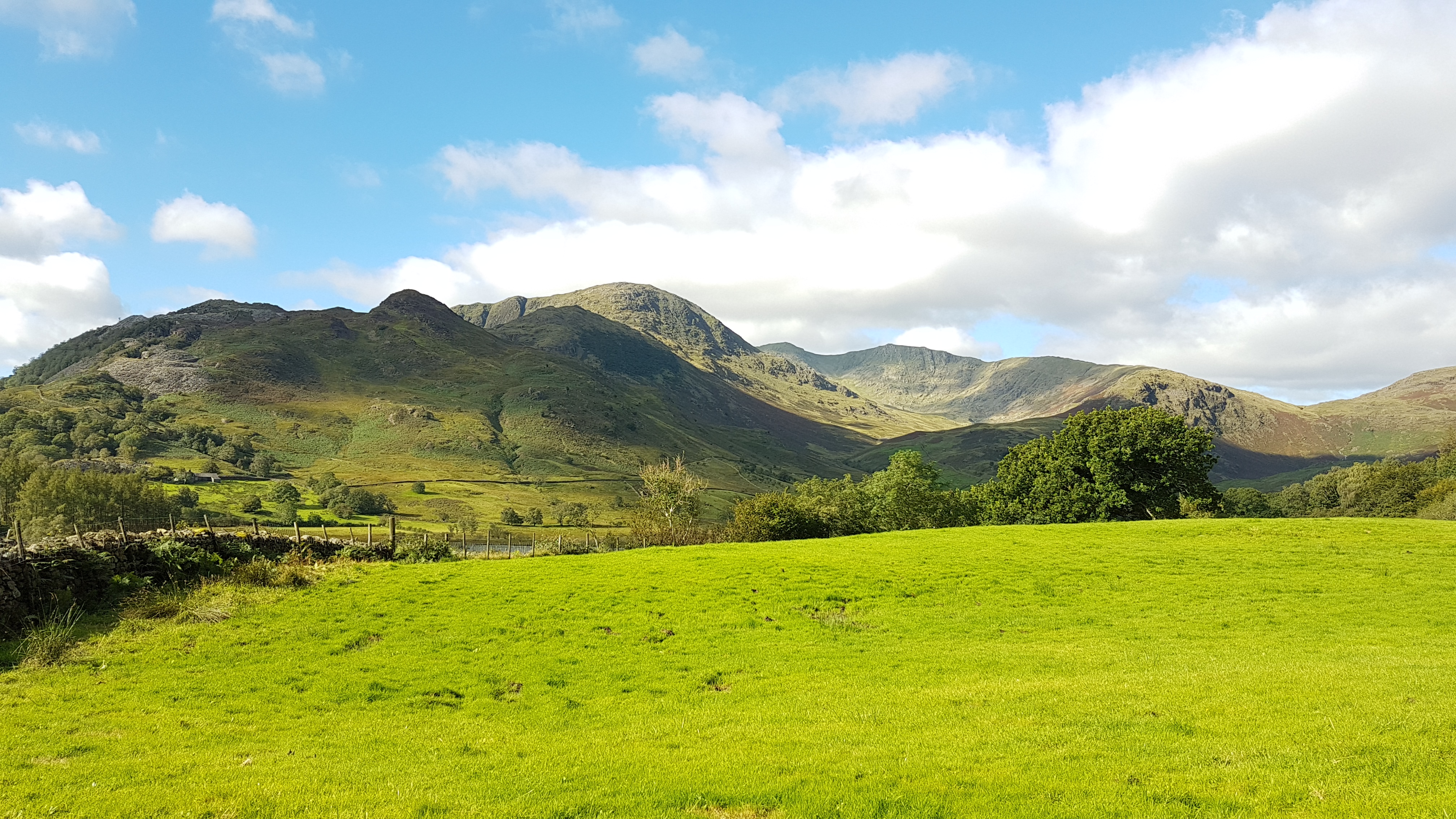 Ficámos instalados no Bluebird Lodge, que é uma guesthouse, não um hotel, mas com pequeno-almoço incluído. O quarto em si, com casa-de-banho privativa eram ambos minúsculos, tenho mesmo a dizer que para usar a sanita era por vezes preciso fazer algum contorcionismo mas a simpatia com que fomos acolhidos e o pequeno-almoço maravilhoso que nos esperava de manhã compensou de certa forma a falta de espaço. Também a bonita vista para a montanha nos alegrava, apesar de ser só apenas ao terceiro dia que o sol brilhou em todo o seu esplendor e mostrou o quanto o Lake District merece a fama que tem em Inglaterra (imagem acima) – o de ser uma das zonas mais bonitas do país.