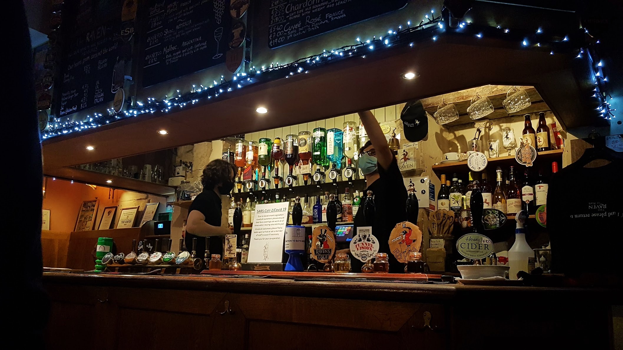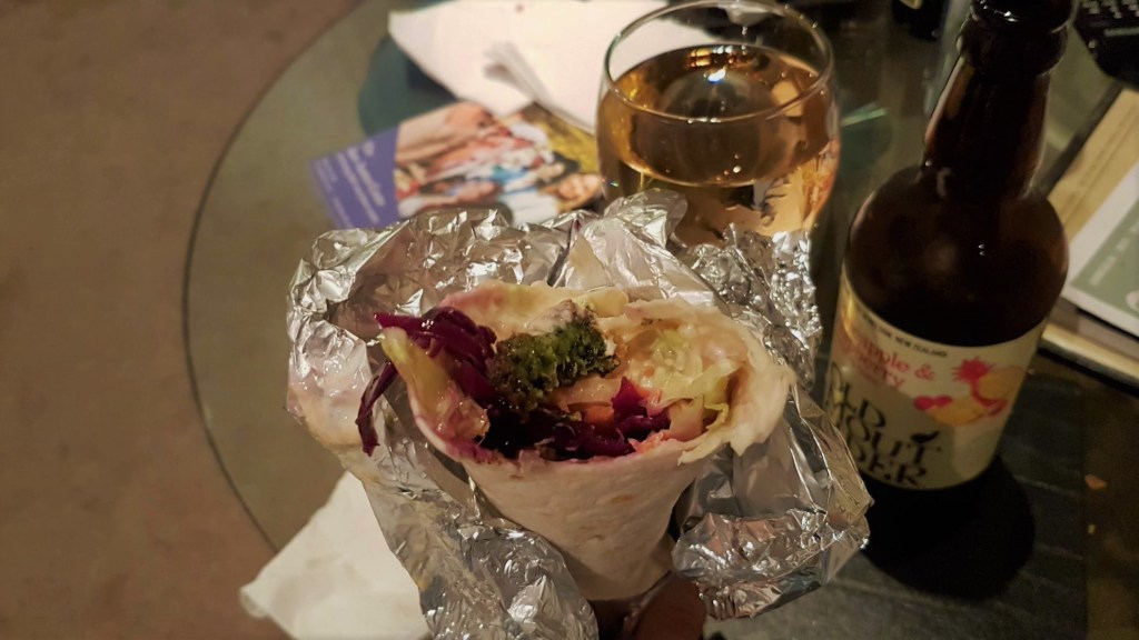 Chegando às 5 e meia com o escuridão e o frio chegava a altura de irmos aproveitar outra parte da cultura de Bath – bebida e comida. Primeiro fomos a um pub “The Crystal Palace“. Apesar de ter boas reviews não achei que tivesse muita seleção de bebidas. Ah, outra coisa que está em vigor desde a pandemia é que para beber num pub é também preciso comer, nem que sejam só batatas fritas. Assim sendo, pedimos uma cidra e uma cerveja e uns nachos para acompanhar. Como disse, não era mau, mas nada de especial.