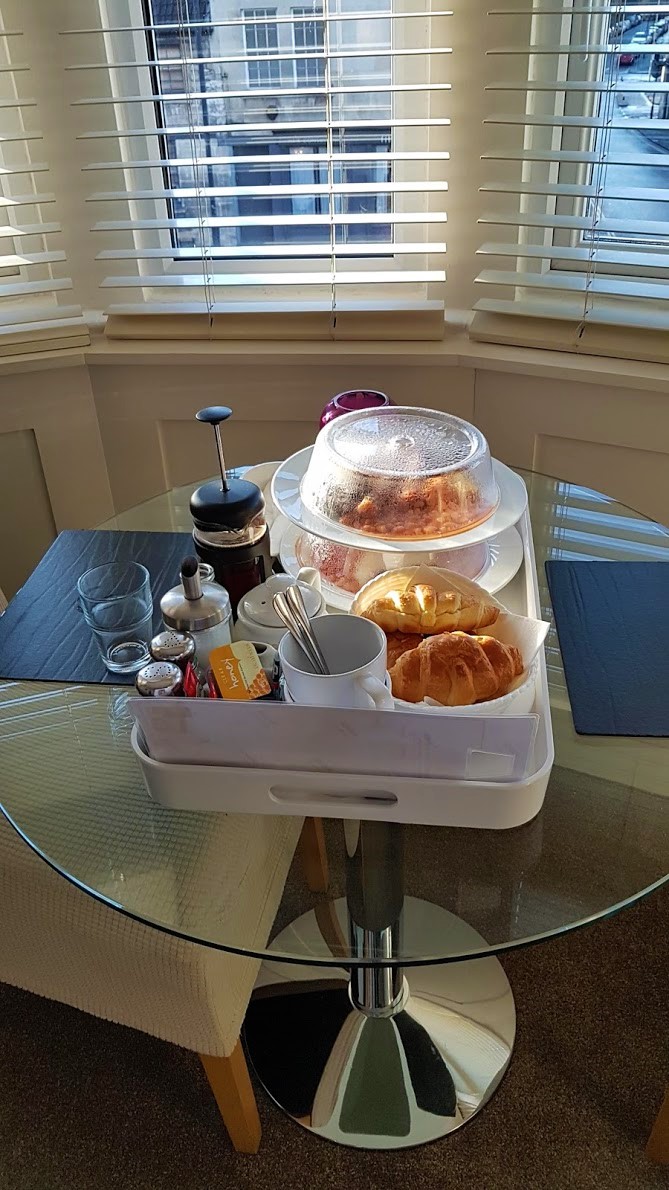 Chegámos a Bath na sexta-feira à tarde e como tínhamos viajado de carro o nosso alojamento foi escolhido especialmente por oferecer parque de estacionamento. Ficámos instalados no “The Bath House Boutique B&B”. O quarto era espaçoso e a decoração encantadora. Fomos recebidos com muita simpatia. O estacionamento era assim meio para o apertado, havia mesmo a possibilidade de ficar com o carro “trancado” por outros veículos, mas como os nossos planos só incluíam andar a pé não nos fez diferença. O pequeno-almoço (já se sabe que tem que estar incluído na reserva) foi-nos servido no quarto, devido às novas medidas relevantes ao COVID-19. O pequeno-almoço valia a pena, era muito bom.
