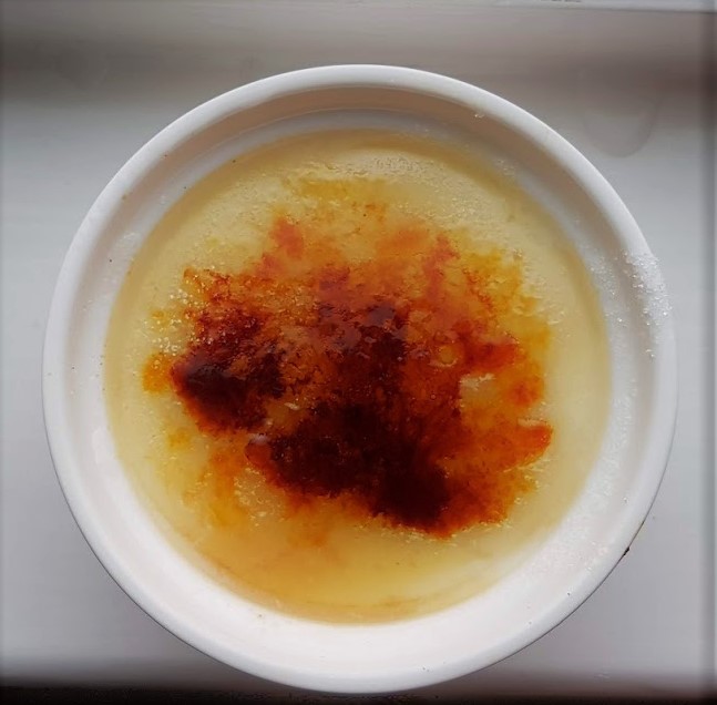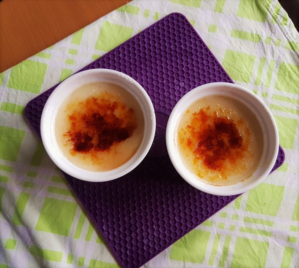 Lá se comprou um maçarico de cozinha para queimar o açucar e deixar aquela camada deliciosa de caramelo por cima de um creme cremoso de ovos e baunilha. Algo que não podia faltar para uma verdadeira receita de Creme Catalana.