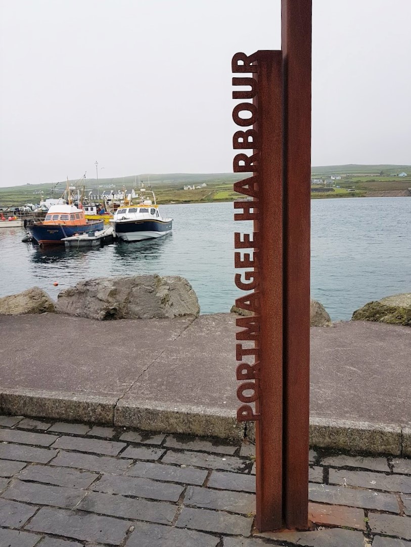 Para almoçar fomos até a Portmagee, a cidade que fica mais perto dos Kerry cliffs. Escolhemos o bar “The Moorings“. Eu pedi o Cajun Chicken Burguer, um hambúrguer de frango com queijo brie e geleia de cebola roxa que estava muito saboroso. Um dos meus amigos disse que a Guiness que lhe tinham servido era uma das melhores que ele até então tinha bebido – e ele é irlandês por isso a sua opinião vale de alguma coisa.Saindo do Ring of Kerry fomos para Dingle. Como sugestão digo-vos que supostamente Dingle tem uma vibrante vida noturna, nós não o confirmámos tanto porque não ficámos hospedados em Dingle como porque como vos disse no último post, as restrições relativamente ao COVID ainda estavam em vigor e, portanto, todos os estabelecimentos encerravam ás 11 da noite. Em Dingle, também existe a correnteza de casas coloridas todas de uma cor diferente.