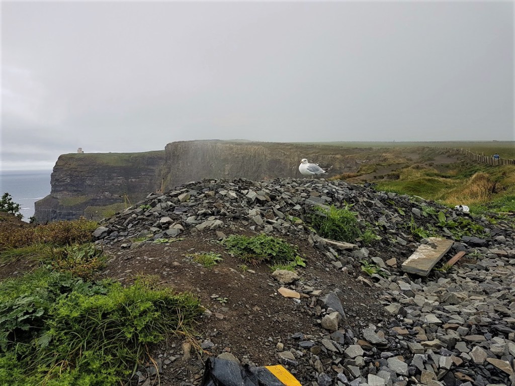 Foi um bocado chato porque o Ring of Kerry tinha sido uma das razões principais para esta viagem, mas aqueles que viajam com alguma regularidade sabem que o tempo é uma das coisas que não se consegue controlar. É aceitar e aproveitar ao máximo. Um dos locais que queríamos e quisemos parar foram os penhascos de Kerry (Kerry Cliffs). Perto dos penhascos há um parque de estacionamento e também casas de banho – ambos muito importantes em viagens pela estrada. O bilhete para entrar na zona dos penhascos custa 4 euros. Kerry cliffs têm uma altura de 300 metros. Eu diria que pelo menos 1 hora – 1 hora e meia para passear por ali, se quiserem apreciar com tempo a paisagem natural e dramática. Para os que gostam ou têm como hobby observação de aves, este é um local único.