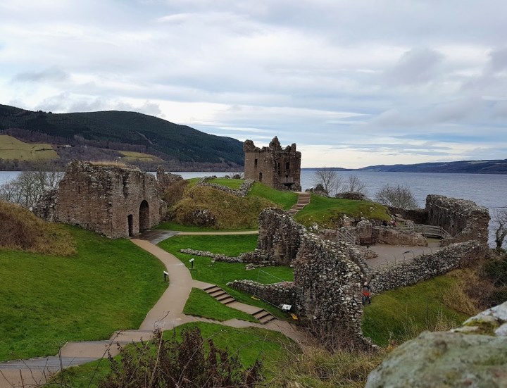 Vou confessar que não passámos muito tempo por aqui, mas é um sítio bonito de passagem associado a um grande simbolismo. Não fosse por isso um local que tem sido preservado ao longo dos tempos. O nosso próximo local não precisa de grandes introduções. Acredito que muitos de vós já tenham ouvido falar do grande e mítico monstro do loch Ness. Loch em escocês significa lago, e sim era à volta dele que iríamos passar grande parte do nosso dia. Não vimos monstro, mas vimos muita comércio à volta deste mítico ser. Fomos visitar o castelo de Urquhart que fica na margem oeste do lago Ness. O bilhete de entrada foi £9.60 por pessoa. Comprámos os nossos bilhetes à entrada do castelo sem problemas e sem multidões, mas acredito que seja relacionado com a pandemia e pela altura do ano em que aqui viemos. Em alturas mais movimentadas talvez seja melhor comprar o bilhete no website oficial – https://www.historicenvironment.scot/visit-a-place/places/urquhart-castle/.