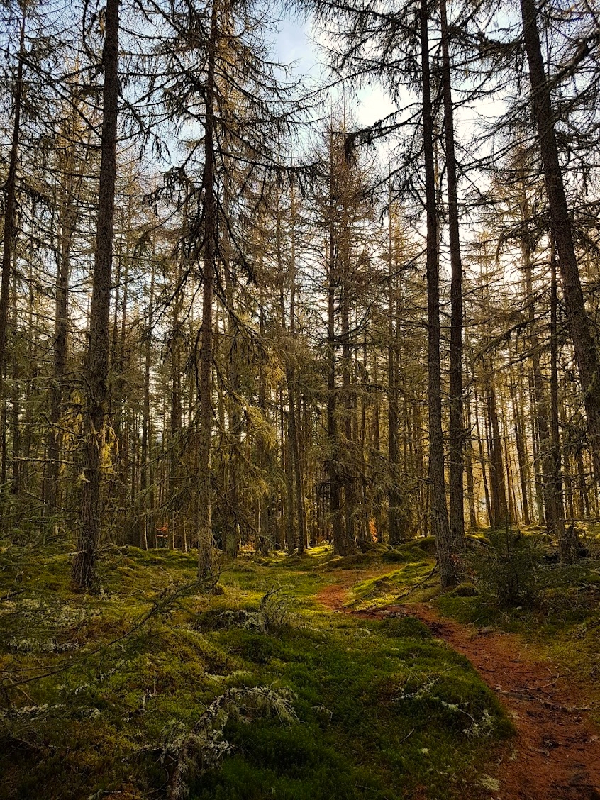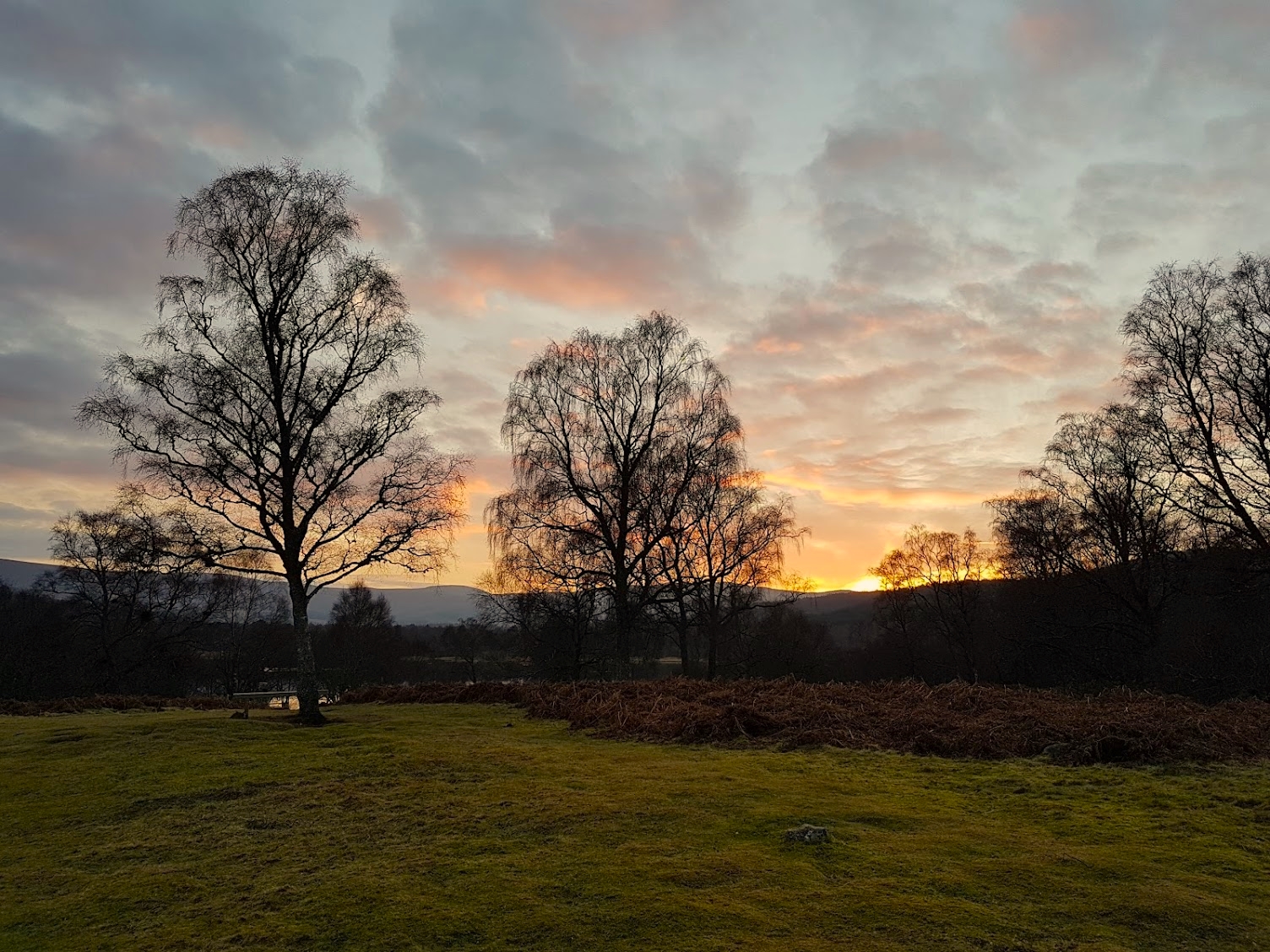 A cascata é o ponto principal desta reserva natural, mas existem outros 3 trilhos disponíveis: Parkin’s Moss Trail, Little Ord Trail e Loch Kinord Trail. Todos eles de acordo com o site que podem ver aqui: https://www.nature.scot/enjoying-outdoors/scotlands-national-nature-reserves/muir-dinnet-nnr/muir-dinnet-nnr-visiting-reserve são de alguma dificuldade. Também podem ver que as distâncias entre os vários trilhos variam desde 3.2Km até 6.4Km e consequentemente também assim varia o tempo que se demora a percorrer cada trilho. Posso-vos dizer que nós não tínhamos esta informação, então fomos mais pelo mapa do google maps e as placas de indicação dos vários trilhos. Como decidimos ir ver a cruz celta – Kinord Cross– que fica perto das margens fomos seguindo a Little Ord Trail. Com a ajuda do GPS encontrámos tanto a cruz como o lago e aproveitámos para saborear o bonito pôr do sol.