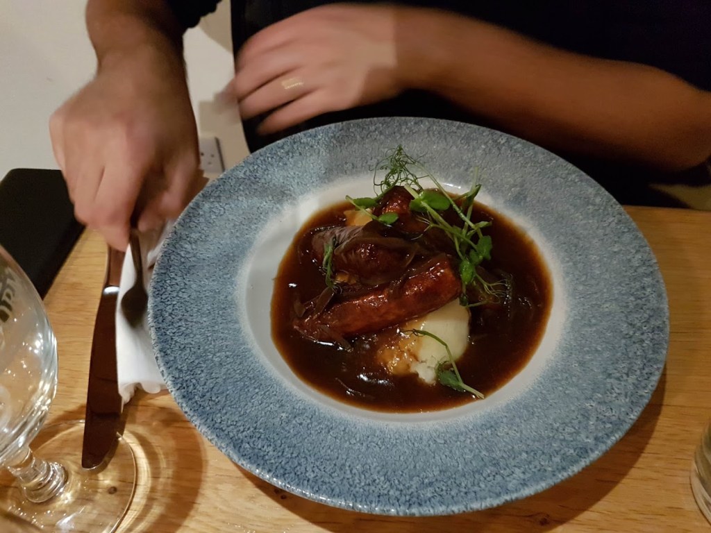 No entanto, para compensar na noite seguinte o meu marido marcou mesa no pub “The Wiking Owl“. O atendimento foi completamente diferente, atenciosos, divertidos e rápidos. Desta vez pedimos também entradas – calamares com molho tártaro – se houvesse mais, mais tínhamos comido. Para prato principal o meu marido pediu salsichas com puré de batata e eu pedi uma coisa mais simples – Mac and cheese – que é massa macarrão com molho de queijo. Eu posso dizer que apesar de simples, o meu prato era muito, mas muito melhor que o da noite anterior e o meu marido simplesmente adorou a comida que lhe foi servida.