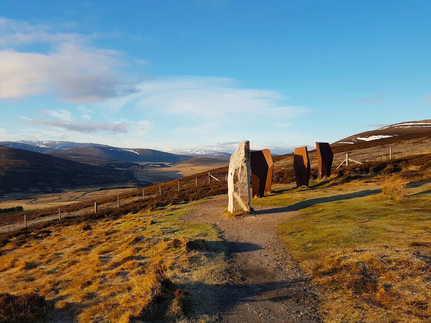 Acho que não é preciso dizer que ficámos com imensa pena de deixar Cairngorm. Tínhamos tido tantas boas experiências, algumas não tão boas, mas a paisagem, o tempo, as montanhas, os lagos, as cascatas, iam deixar muitas saudades. Depois de um bom pequeno-almoço dissemos adeus a Carn Mohr Lodge. Ainda antes de voltarmos para Inverness, afinal ainda não tínhamos explorado a cidade fomos até à estação de esqui de Lecth. Primeiro parámos em “The Watchers” onde esculturas de pedra se erguem em frente a um belíssimo panorama. E a mensagem numa das pedras “Take a moment to behold” – “Tira um momento para contemplar” é o melhor conselho que aqui se pode dar. Todos sabemos o significado da mensagem e eu acho sempre uma pena quando as pessoas vão a lugar só para tirar a tal fotografia para meter nas redes sociais e mostrarem que tiveram ali sem nunca pararem para apreciar, seja uma paisagem, uma obra de arte ou um monumento.