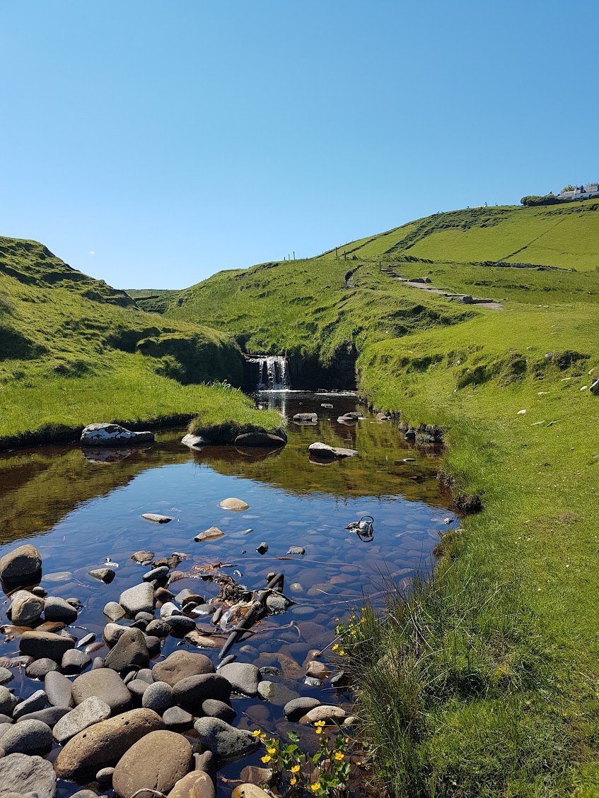 Falls of Rha foi a penúltima paragem que tínhamos para o nosso dia. Não há parque de estacionamento, tem que estacionar o carro um bocadinho mais à frente (nós deixámos à frente de umas vivendas) e ir a pé por dentro da floresta. O caminho, no entanto, demora menos ou cerca de 10 minutos e no final encontram-se frente a frente com a bonita cascata.