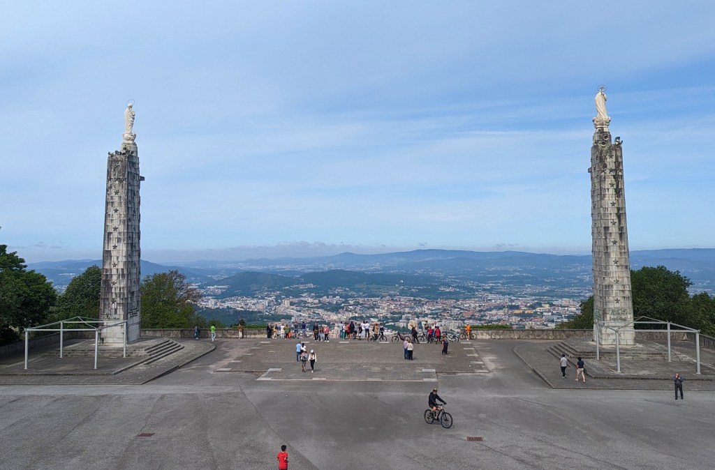 Não querendo disturbar a missa, nem esperar que ela acabasse, pusemo-nos a caminho até ao Santuário do Sameiro, o segundo maior santuário Mariano de Portugal. A primeira pedra foi lançada em 1873 para a construção da capela. No entanto, a primeira pedra para a construção do santuário seria colocada ali 17 anos mais tarde. Como não podia deixar de ser, este local tem um valor religioso enorme, mas o que mais impressiona é a sua parte exterior com os grandes pilares que ladeiam o início da escadaria, os monumentos do Imaculado Coração de Jesus e Coração de Maria.