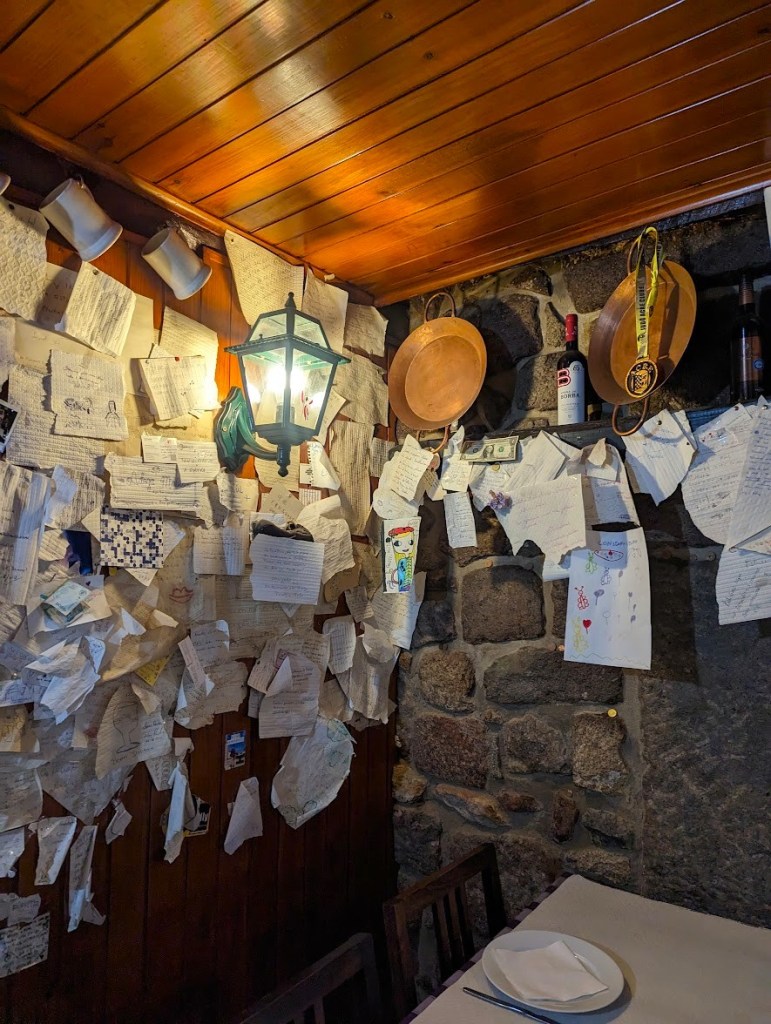 Assim chegava a hora de ir para o centro de Braga e encontrar um restaurante para almoçar. Seguindo referências de quem vive na zona fomos almoçar ao restaurante Adega Malhoa que fica bastante perto da Sé de Braga. Mal entrámos, encontrámos um espaço acolhedor, rústico e intrigante. Todas as paredes estão forradas de papéis com mensagens de agradecimento, desenhos e até moedas. Mal nos sentámos a mesa sentimos que estávamos realmente num local tradicionalmente nortenho – e digo isto com todo o respeito possível. Os pratos escolhidos não podiam deixar de ser os típicos da região – começando por umas maravilhosas pataniscas de bacalhau seguidas de rojões á moda do Minho, Arroz pica no chão e vitela assada que estava uma delícia, a carne era tão tenra e saborosa. Foi uma das melhores refeições do fim-de-semana.