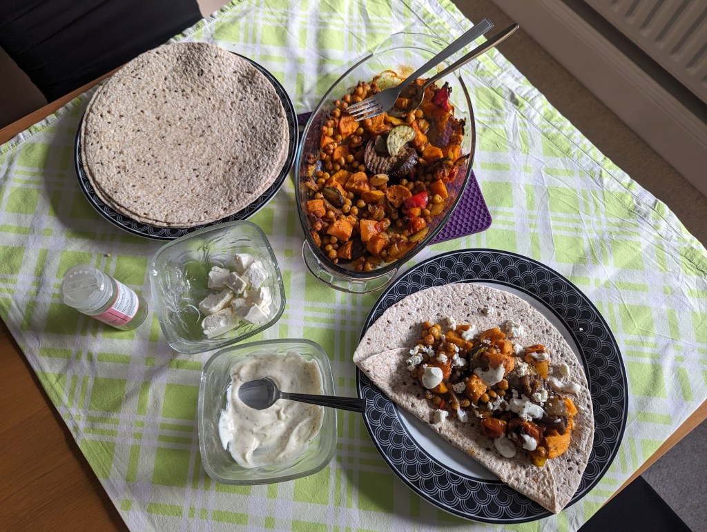 Para esta receita pode usar pão para kebab ou pão pita em vez das tortilhas. Pode também substituir a mistura de vegetais para uma que mais lhe agrade.