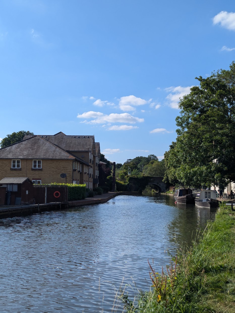 Para aqueles que queiram fazer um longo passeio ao longo do canal, aconselho uma paragem no pub The Three Horseshoes. Este pub ficando mesmo junto ao canal forma um cenário encantador. Também é possível chegar ao pub de carro. Para quem visita Inglaterra uma das experiências obrigatórias é experimentar a comida de pub – como o fish and chips (peixe frito com batatas fritas), ou se vierem no Domingo o famoso Sunday roast com carne assada, vegetais e o famoso yorkshire pudding (uma espécie de pão em forma de uma pequena tigela – esta é a melhor forma que tenho para descrever). Mas para quem procura só uma bebida, este pub também é o local ideal especialmente quando o sol aparece.