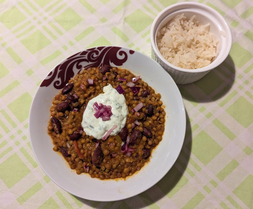 - Sirva o caril acompanhado com o arroz e polvilhado com a cebola roxa e uma colher de sour cream.