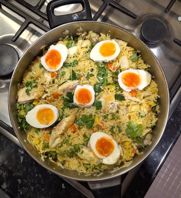 - Sirva o arroz e o peixe juntamente com os ovos, o limão e os restantes coentros picados.