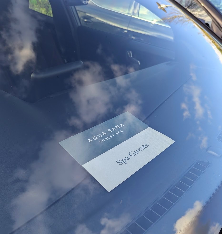 Como nós só vínhamos para o spa, tivemos de mostrar a nossa reserva na zona das cancelas e depois conduzirmos por dentro desta espécie de resort/parque natural privado até ao spa. Os clientes do spa têm acesso gratuito ao parque de estacionamento.