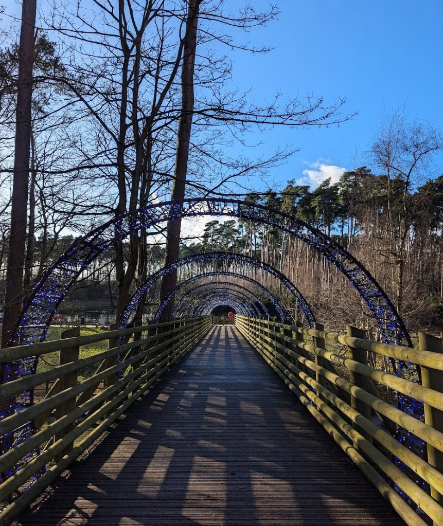 Quando saímos já depois das 8 da noite reparámos que havia várias esculturas de luzes que reluziam contra a luz escura do lago e da floresta, tornando-as ainda mais belas.