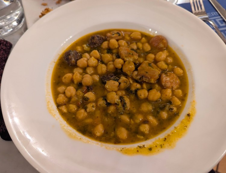 Para prato principal pedimos uma sopa chamada de Potaje Flamenco de Garbanzos Y Espinacas con Chorizo.