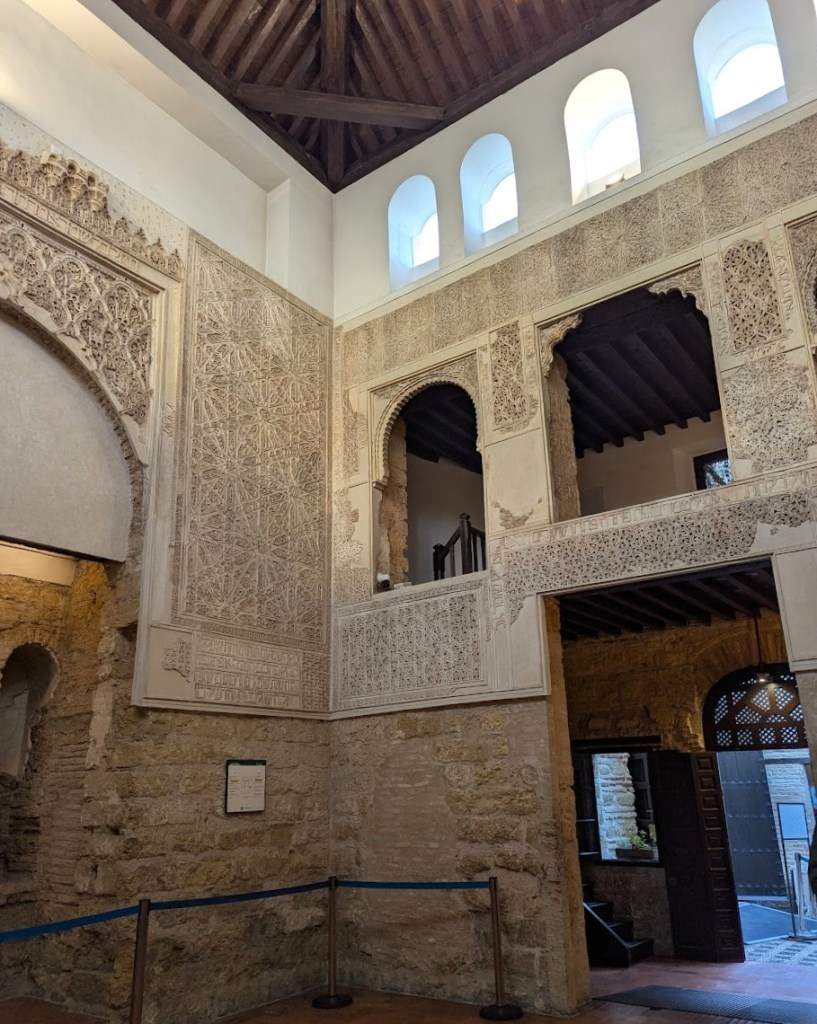 Antes de irmos visitar o Alcázar fomos primeiro ver as ruínas dos Baños del Alcázar Califal que ficam entre a parte histórica de Córdoba e o Alcázar de los Reyes Cristianos. Estes baños são resultado de uma mistura de vários estilos arquitectónicos, já que as várias salas foram construídas em diferentes períodos. A primeira parte foi construída durante o reinado de al-Hakam II (961-976), como baños pertencentes ao Palácio do Calife. No século XII, este tornou-se no palácio dos Almorávides y Almohades e desde a reconquista, em 1236, o palácio dos reis cristãos até o abandonarem em 1338. Infelizmente do palácio califal não há vestígios.