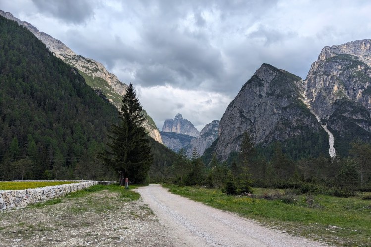 Para chegarmos ao lago di Landro apanhámos o caminho ‘Lunga Via delle Dolomiti’. Depois de passearmos um bocado pelas margens do lago reparámos que o caminho continuava na direcção oposta. Fomos ver no Google Maps se havia algo de interessante mais à frente e encontrámos o ponto de nome ‘Vista Panorâmica Tre Cime di Lavaredo’ a 15 minutos de distância a pé. Apesar deste desvio não fazer parte do percurso fomos ver o que era, até porque estávamos com tempo uma vez que não tínhamos feito o trilho à volta do Lago di Misurina.