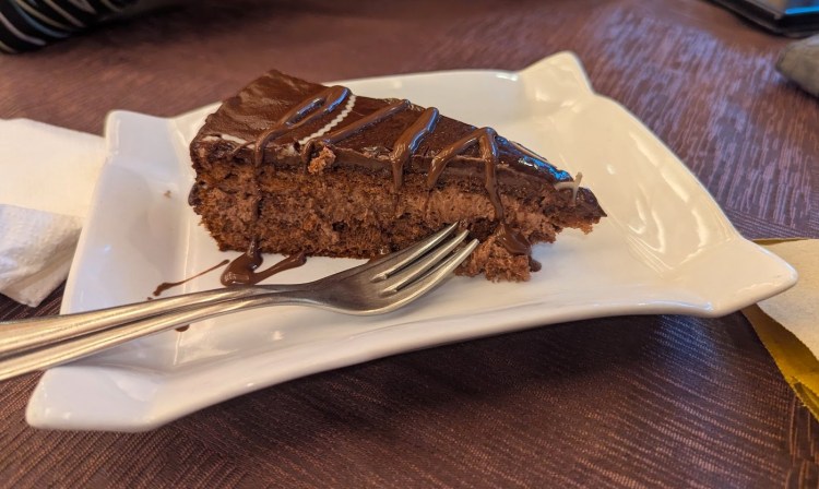 Arrependo-me imenso que não tenhamos ficado pelas pizzas porque teríamos tido uma refeição deliciosa em vez de ficar com um amargo gosto na boca (literalmente). Ainda pedimos sobremesa e café para não acabar a refeição de maneira tão insatisfatória.