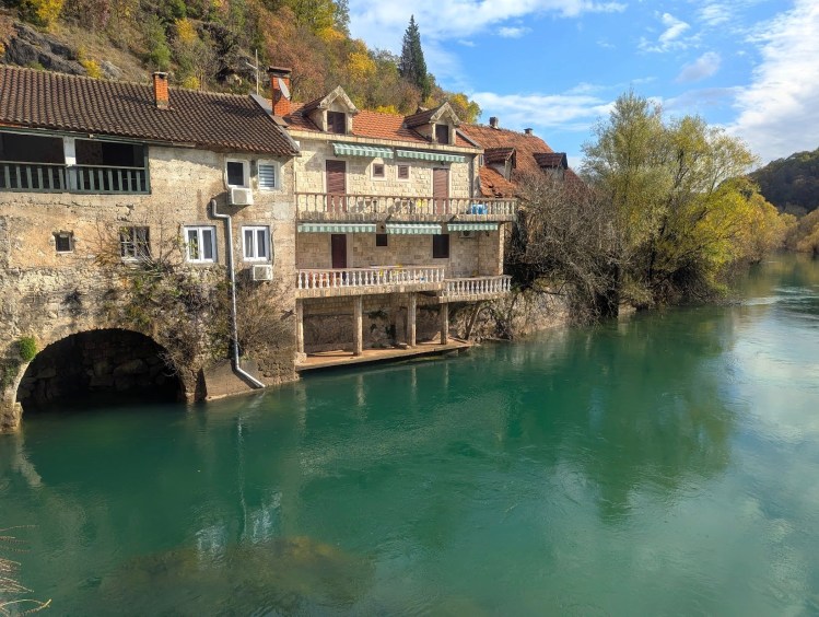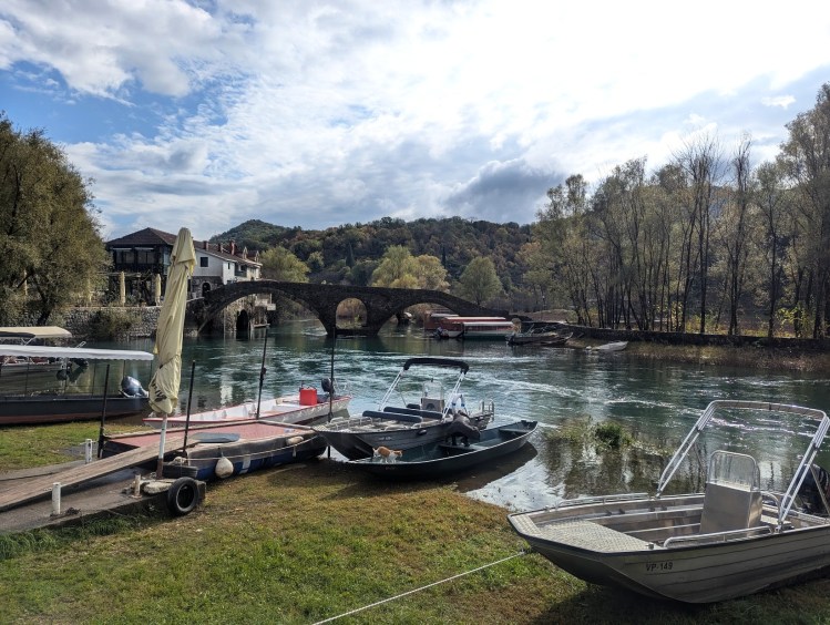 Hoje em dia a aldeia pode ser visitada, mas talvez por virmos num dia de semana cedo e ainda por cima em meados de novembro, não podemos dizer que a vila estava movimentada, muito pelo contrário. Contudo isto fez com que estacionar dentro da aldeia fosse fácil e que pudéssemos andar pelo passadiço junto às águas e visitar a ponte velha (também conhecida como ponte de Danilo em memória ao príncipe) sem multidões. Na verdade, o que mais se viu foram as ofertas das tais viagens de barco. Em relação a estas pareceu-nos que os preços nesta aldeia eram mais elevados do que os de Virpazar talvez por Rijeka Crnojevića se localizar numa zona menos central do lago. Não obstante, para quem gosta de bonitas paisagens e pitorescas aldeias, Rijeka Crnojevića é um local perfeito para visitar no lago Skadar.