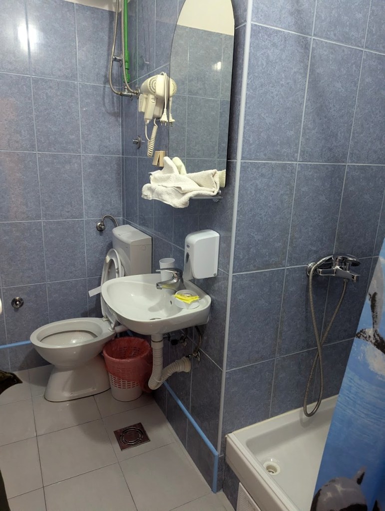Para tomar banho também foi engraçado já que as toalhas de banho eram do tamanho de toalhas de mão. Mas o chuveiro tinha água quente que é um dos pontos mais importantes de qualquer sítio onde fique. Qualquer lugar que fique que me faça ou passar frio ou lavar-me com água fria perde-me de imediato.