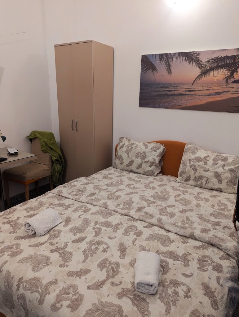 Quando entrámos reparámos que o quarto era bastante pequeno. Depois quando nos começámos a acomodar reparámos que o ar condicionado não funcionava, a persiana da janela estava a desfazer-se já meio descaída como se tivesse desistido de existir, e o acesso ao wi-fi era uma espécie de ilusão, ora vinha ora ia, ora parecia que vinha, mas afinal não. No entanto, este foi a acomodação mais barata da viagem e por 25 euros não se podia pedir muito mais. E afinal como disse, passámos uma boa noite de sono. Acho que será mais problemático quando houver mais pessoas hospedadas porque cada vez que alguém entrava era uma barulheira, mas felizmente naquela noite só aconteceu três vezes e quando ainda estávamos acordados.