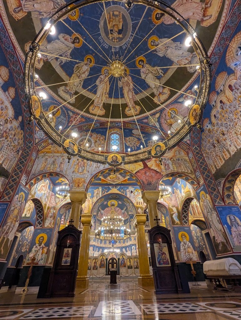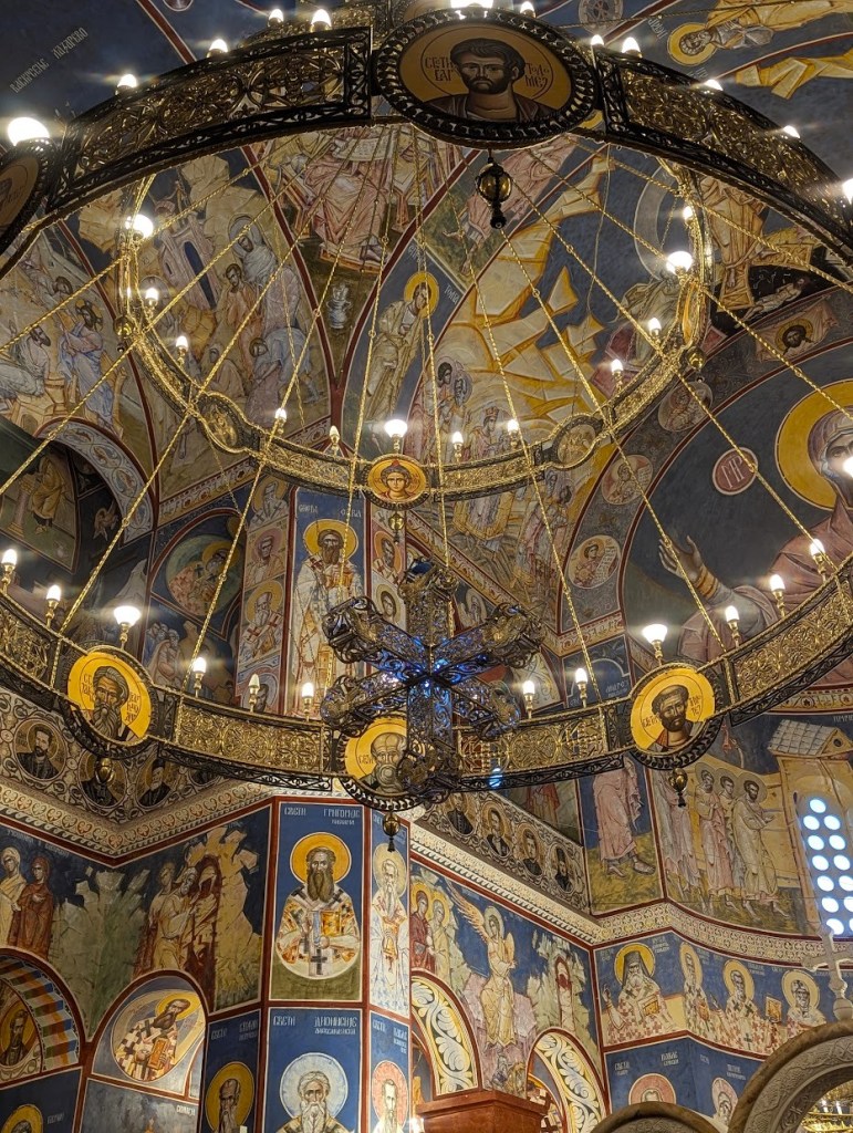 Antes de deixarmos Bar para trás quisemos fazer duas coisas, tomar o pequeno-almoço e visitar a igreja ortodoxa de St Jovan Vladimir de edifício imponente que nos tinha chamado a atenção no dia anterior. Saímos do nosso quarto eram 7 e meia e fomos logo para esta igreja que já tinha aberto há meia hora. A entrada para a visita é gratuita e mesmo àquela hora matinal já havia algum movimento.