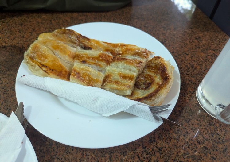 Não tenho a certeza se este foi o melhor da viagem, mas a verdade é que enquanto aqui estivemos vimos locais a entrar, a sair, a sentar-se nas mesas, todos a comer o tal burek. Nós pedimos para beber limonada, já que não havia café, mas recusámos o iogurte. Contudo notámos rapidamente que é com o iogurte a forma mais tradicional de comer burek. No entanto, devo dizer que a limonada era deliciosa por isso não houve aqui qualquer arrependimento na escolha.
