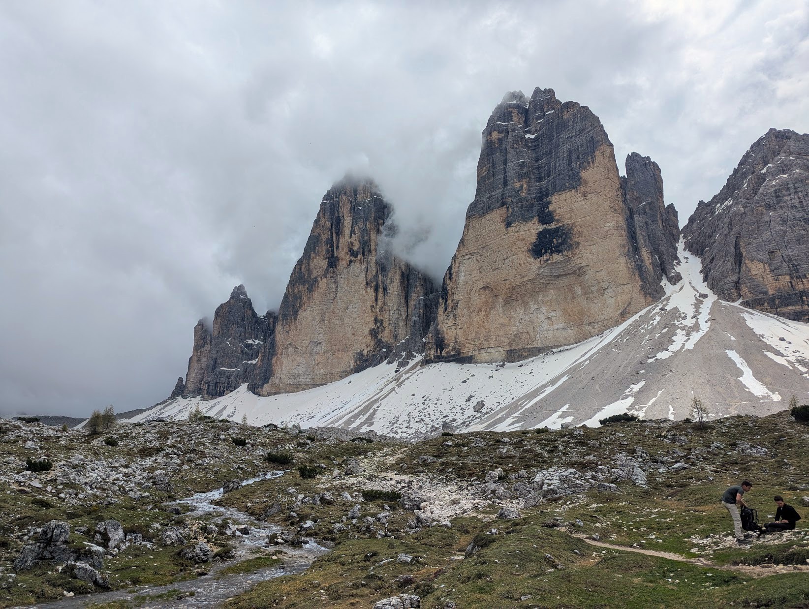 Foi aqui que pela primeira vez estive num local com neve, mas com calor suficiente para andar de manga curta. Meio estranho para o cérebro conseguir fazer sentido nisto. Mesmo assim sem fazermos o trilho que queríamos ainda passámos duas horas a explorar a zona. Por isso se calhar até foi bom não termos feito o trilho Giro delle Torri o qual provavelmente nos levaria mais outras duas horas (quando o finalmente tivéssemos encontrado).