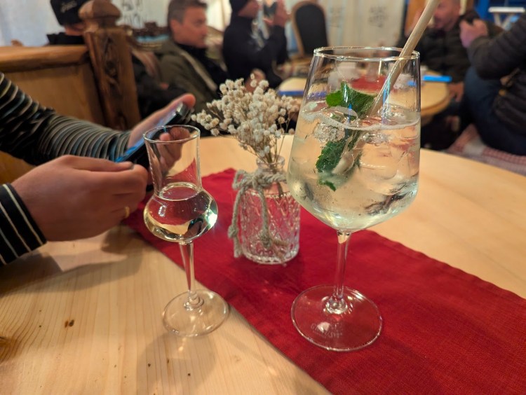 Enquanto aqui estivemos pedimos mais uns copos de grappa e cocktails. Infelizmente o Hugo Spritz deste restaurante não era grande coisa, tal como não era o Aperol Spritz, mas isso não diminui o sentimento de bem-estar de ali estarmos um bocado à conversa antes de fecharmos aquele dia.