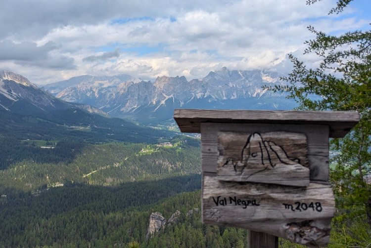 Para terem uma percepção do quanto é preciso subir deixámos o carro a uma altitude de cerca de 1700 metros enquanto o Lago Federa está a mais ou menos 2046 metros. E o lago nem é o ponto mais alto do percurso. Em algumas partes a subida era bastante inclinada de tal forma que quando chegámos ao ponto panorâmico Val Negra que fica a 2048 metros um de nós começou a ter a respiração ofegante e tonturas. Estivemos um bocado sentados ao pé deste ponto panorâmico, mas como a sensação de mal-estar não passava decidimos descer o trilho e não ir até ao Lago Federa. Apesar de já termos feito a maior e a pior parte do caminho e de não estarmos muito longe do lago (agora lendo novamente parece que estou meio ressabiada por não ter ido ao lago, mas até nem estou…muito 😅). Pensamos que estes sintomas apareceram por estarmos a altas altitudes sem termos dar tempo ao corpo para se acostumar a tal.