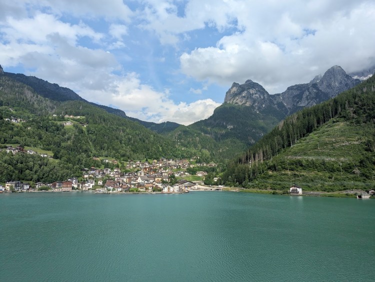 O Lago di Alleghe não é um dos lagos mais conhecidos nos Dolomitas tanto que não era mencionado em nenhuma das fontes de onde tirámos ideias para esta viagem. E nós normalmente fazemos uma junção de ideias tiradas das redes sociais, websites e vídeos. Mas não, este lago não aparecia referido em nenhum lado, o que é uma pena.