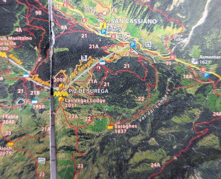 Desvantagem: Esta desvantagem é apenas para quem viaja em 2025. Como em 2026 os jogos olímpicos de inverno vão ser nos Dolomites há imensas obras nas estradas. E foi algo que nos prejudicou porque a estrada que conectava Cortina d’Ampezzo e San Cassiano, Passo Valparola, estava fechada e sendo a única estrada, tivemos que fazer várias vezes um desvio significativo no nosso itinerário. Foi também devido a estas obras que evitámos ficar hospeados nas cidades principais, Cortina d’Ampezzo e Ortisei.