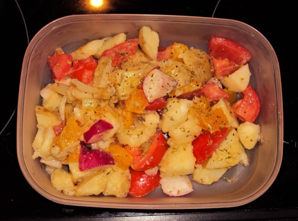 Batatas, massas e vegetais