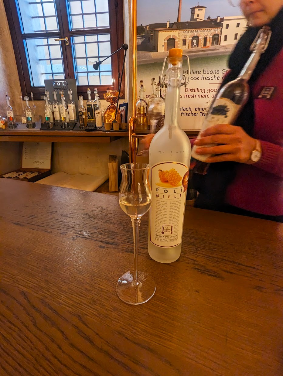 Se pedirem podem fazer uma degustação de grappa, eu ainda antes da viagem li no site oficial que a degustação custava 3,5 euros por 5 diferentes tipos de grappa, mas nós experimentámos duas e não nos foi cobrado nada. Provámos a grappa com sabor a mel e com sabor a mirtilos. A de mirtilos ficou a ganhar e agora olhando para trás devíamos ter arranjado um espacinho para trazer umas garrafinhas. Se virem Poli Grappa à venda em Portugal não deixem de escrever um comentário.