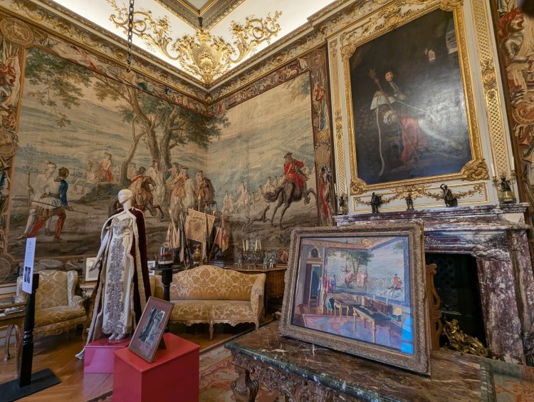 Tapeçarias, quadros e mobílias são alguns dos itens que se encontram em exposição e que podem ser apreciados durante a passagem pelos diferentes salões. Vou apenas mencionar dois em específico começando pelo China Ante Room, onde se encontra a coleção de porcelana de Sèvres e Meissen, colecção essa oferecida ao 3º duque de Malborough pelo rei da Polónia em 1751 e o Green Writing Room, onde se encontram duas das primeiras tapeçarias adquiridas pelo 1º duque de Malborough para celebrar as suas vitórias militares.