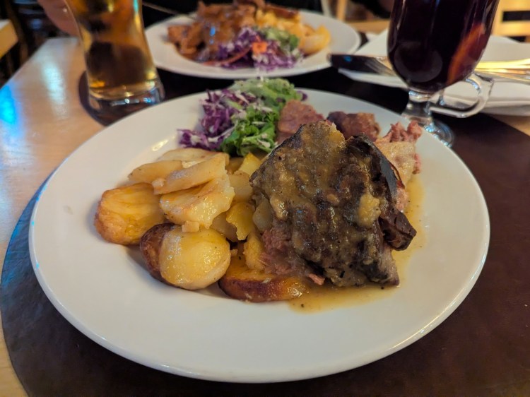 Para jantar nem tentámos encontrar outro restaurante diferente do dia anterior (ver aqui), iríamos voltar ao restaurante O’ro. Afinal era perto e podíamos ir a pé, a comida era deliciosa, o atendimento simpático e os preços não muito caros. E sabíamos exactamente o que íamos pedir, o Borrego de Durmitor e o Veado de Durmitor – uma espécie de guisado com carne e batata típico da gastronomia de Montenegro. No entanto, achei que para o preço (quase 20 euros cada) não era nada de especial tendo gostado muito mais da refeição do dia anterior. E aliás esta acabou por ser a refeição mais cara de toda a viagem, tendo ficado a 55 euros pelos dois com bebidas e sobremesa incluídas.