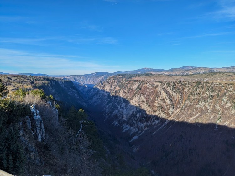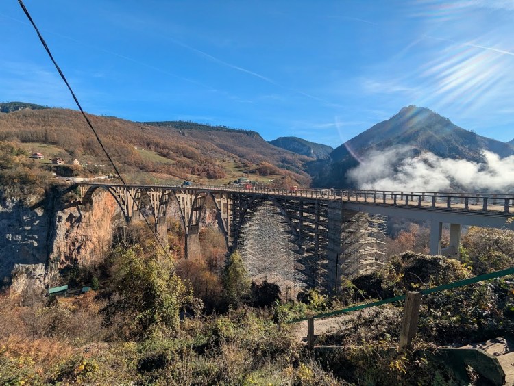 O desfiladeiro do rio Tara faz parte do Património Mundial da UNESCO e é conhecido como a ‘lágrima da Europa’ pelas suas águas cristalinas. Este desfiladeiro é o mais profundo da Europa e o segundo do mundo, sendo apenas ultrapassado pelo Grand Canyon nos Estados Unidos da América. O desfiladeiro Tara tem uma profundidade máxima de 1300 metros e estende-se por 82km. Uma das principais atracções associada a este desfiladeiro é a ponte Đurđevića construída entre 1937 e 1940 com 365 metros de comprimento e 172 metros de altura. Mais impressionante ainda por ter sido construída essencialmente à base de trabalho manual com reduzido suporte de maquinaria. Esta ponte é sem dúvida um feito incrível de engenharia daquele tempo. Na altura em que visitámos a ponte ela estava a ser reforçada e portanto havia vários trabalhos a decorrer.
