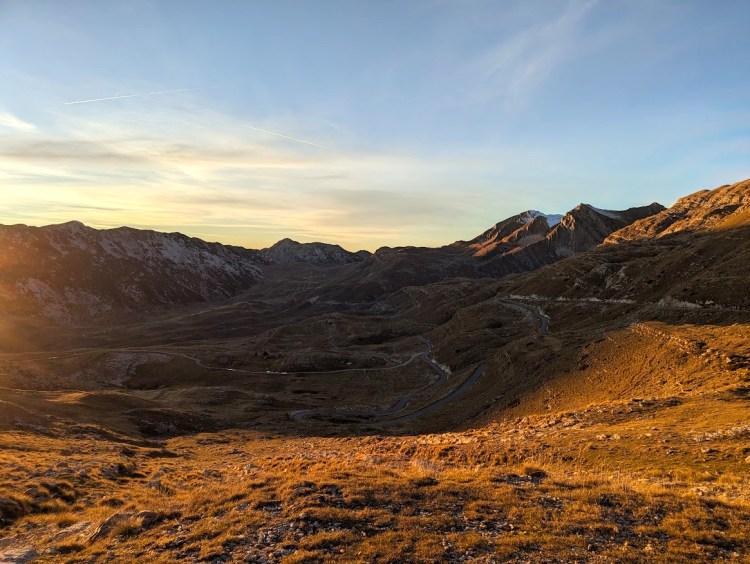 Em Sedlo também havia um banco de madeira e não há preço que pague pela experiência de estar ali sentada a beber café do termo enquanto via o pôr-do-sol. E esta é outra sugestão que deixo aqui, a de fazerem esta parte da viagem ao final da tarde. Acreditem que a luz dourada a bater nas montanhas adiciona uma outra camada de surreal à experiência. Quase como se estivéssemos sozinhos num outro planeta.