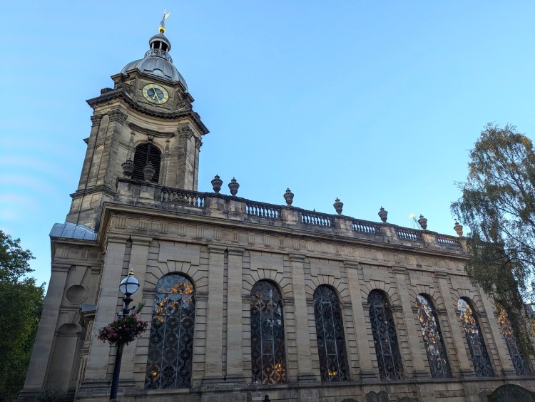 A catedral de Birmingham, também conhecida como a catedral de São Felipe (St. Philip), foi construída em 1715 pelo arquitecto Thomas Archer. A arquitectura desta catedral foi baseada na das igrejas de Roma em Itália. No interior da igreja a parte mais imponente são os vitrais, obras de Edward Burne-Jones. Os vitrais principais da igreja são o vitral da ‘Ascensão’, o vitral do ‘Nascimento’, o vitral da ‘Crucificação e por último o vitral do ‘Último Julgamento’. Dentro da igreja podem-se visitar estes vitrais e até estão disponíveis informações também em português com detalhes incluindo o seu significado.
