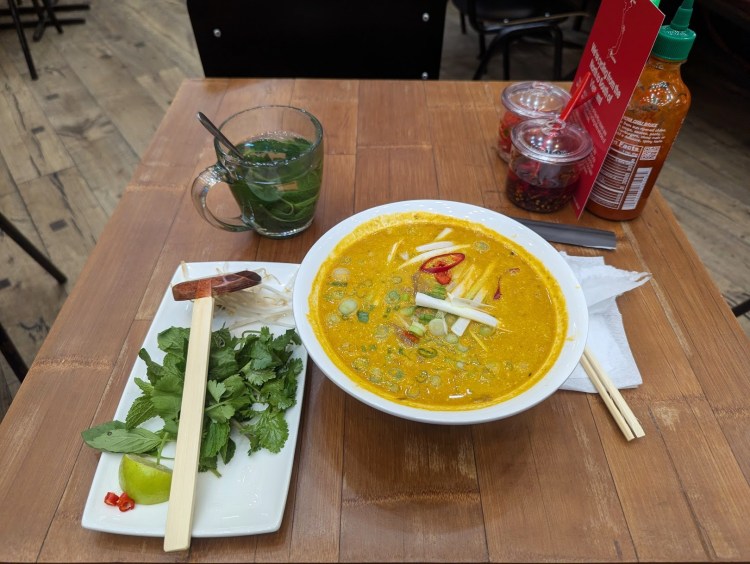 Para comeracabei por escolher o Curry Noodle Soup – um prato que junta o clássico caril vietnamita e a sopa de noodles. Posso afirmar que era muito bom e não pensem que uma sopa não vos chega, porque a tigela de sopa vem com imensos noodles e vegetais. Eu escolhi a que vem com carne de vaca desfiada, mas há outras opções como com frango ou tofu e cogumelos ou camarões. Se estiverem por estes lados recomendo este restaurante, a zona pode não ser tão bonita como junto aos canais, mas o Bullring shopping center é uma visita cultural que deve ser feita. Se estiverem por Londres também podem ter a mesma experiência, uma vez que esta franchise está espalhada por algumas cidades de Inglaterra.