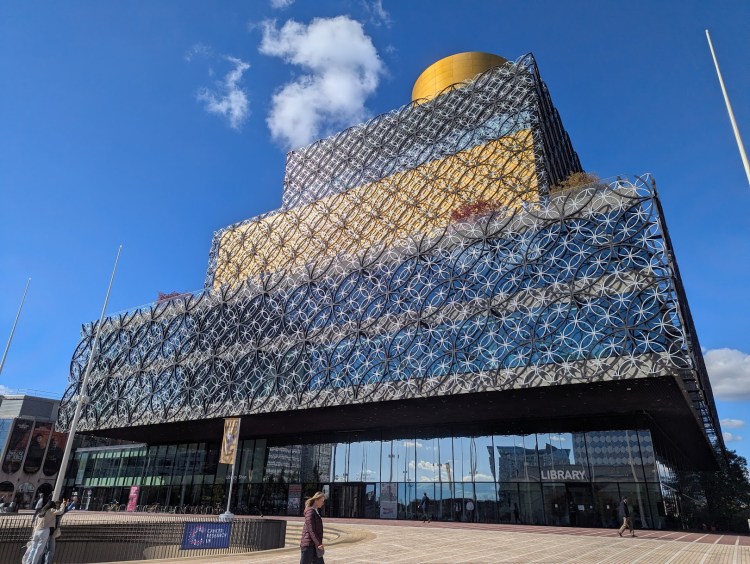 Durante a última visita, no final de novembro de 2025, tive finalmente a oportunidade de visitar o interior da biblioteca de Birmingham, que abriu portas em 2013. O objectivo da visita era subir ao 9º piso para ficar a conhecer a sala memorial de Shakespeare. E o melhor é que esta sala está aberta ao público e a sua visita é gratuita.