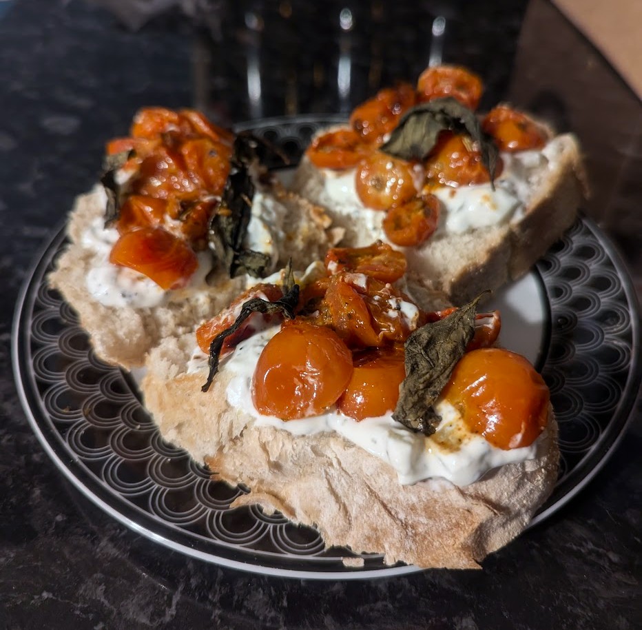 Tosta de tomates-cereja e tzatziki