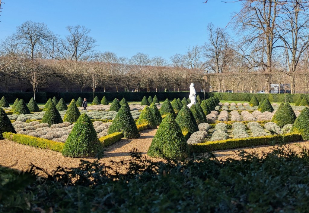 Como disse acima, a nossa visita começou pelos jardins. Mas lembremo-nos que estávamos no início de março e por isso os jardins ainda mostravam os efeitos do inverno e muito pouco da primavera que ainda tinha de chegar. Talvez isso tenha feito com que a nossa visita não tenha sido muito longa até irmos para dentro da casa. Mas não deixámos de passar pelas 5 partes diferentes dos jardins, que são as seguintes: