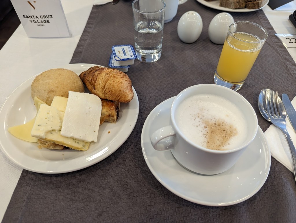 O pequeno-almoço era muito bom – continental com diferentes tipos de pães, queijos, charcutaria variada e frutas. Mas também se podia escolher na hora omeletes, ovos cozidos, salsichas, panquecas, etc. Sei que a senhora que fazia estes pedidos era fantástica porque estava sozinha a realizar em tempo útil todos os pedidos de todos os hóspedes. Eu fiquei completamente fã das suas omeletes de queijo e cogumelos. O que posso apontar como negativo foi o estacionamento porque não havia espaços suficientes, muitas vezes chegámos e era difícil estacionar o carro ou sair com o carro de manhã. Houve até uma ocasião que não havia espaço e também não havia ninguém na recepção por mais de meia hora. Mas isto foi uma pequena coisa que não diminui a nossa experiência neste hotel. A localização era perfeita e adorámos Santa Cruz.