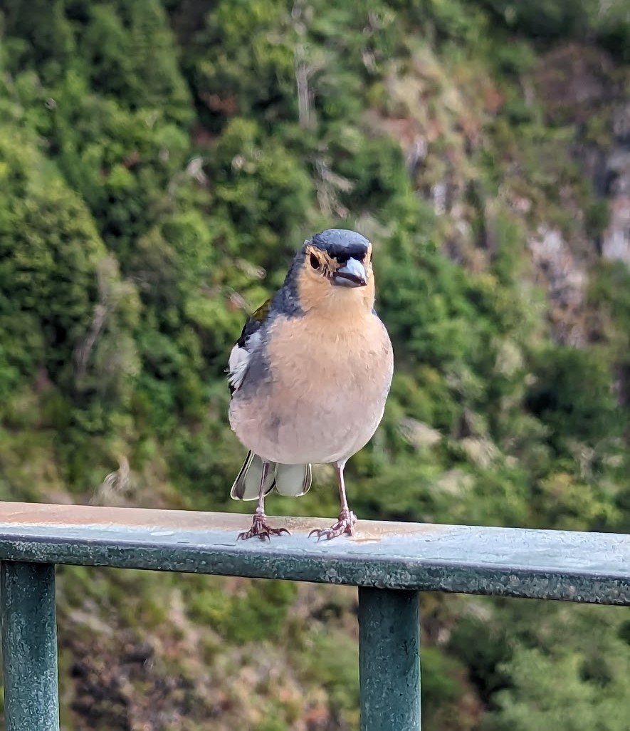 Como disse acima este trilho é de nível fácil com uma distância de 1,5Km para cada lado (3 Km no total). O trilho culmina no Miradouro dos Balcões com uma vista magnífica. Este miradouro é um ótimo local para observação de aves, e há vários passaritos bastantes amigáveis, especialmente se tiverem comida à mão. Imagino que quem seja entendido no assunto esta neste momento a ranger os dentes com o termo ‘passaritos’- vá o bis-bis, mas também há o papinho e o melro-preto e o pombo-trocaz.