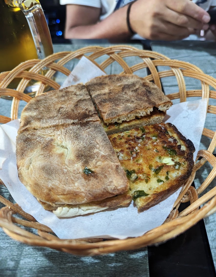 Chegava a altura de voltar para o hotel e encontrarmos um sítio para jantar. Para primeiro dia queríamos uma coisa local e foi por isso que fomos jantar à Taberna do Petisco. Foi aqui que comemos o nosso primeiro bolo do caco – sim também houve muitos desses durante a nossa estadia na Madeira e apesar de alguém me ter dito que era pão de alho e que não sabia o que tinha de especial (eye roll), eu fiquei logo ali completamente perdida de amores por este pão. Tal como o nome indica, este restaurante é mais de petiscos e escolhemos o prato de polvo e de camarão. Ambos muito bons, mas talvez tenha gostado mais do de camarão.
