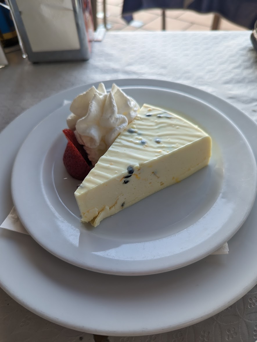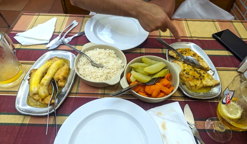 Para jantar e não querendo sair de carro, nem muito da zona, acabámos no restaurante Bom Jesus onde experimentámos o famoso peixe com maracujá e banana, começando pelo polvo como entrada – acho que era o polvo de cebolada – e para finalizar mais um cheesecake de maracujá. Da refeição adorámos – preferimos o peixe com maracujá, mas sem a banana e adorámos a entrada de polvo. Apesar do mau tempo acabámos bem o dia.