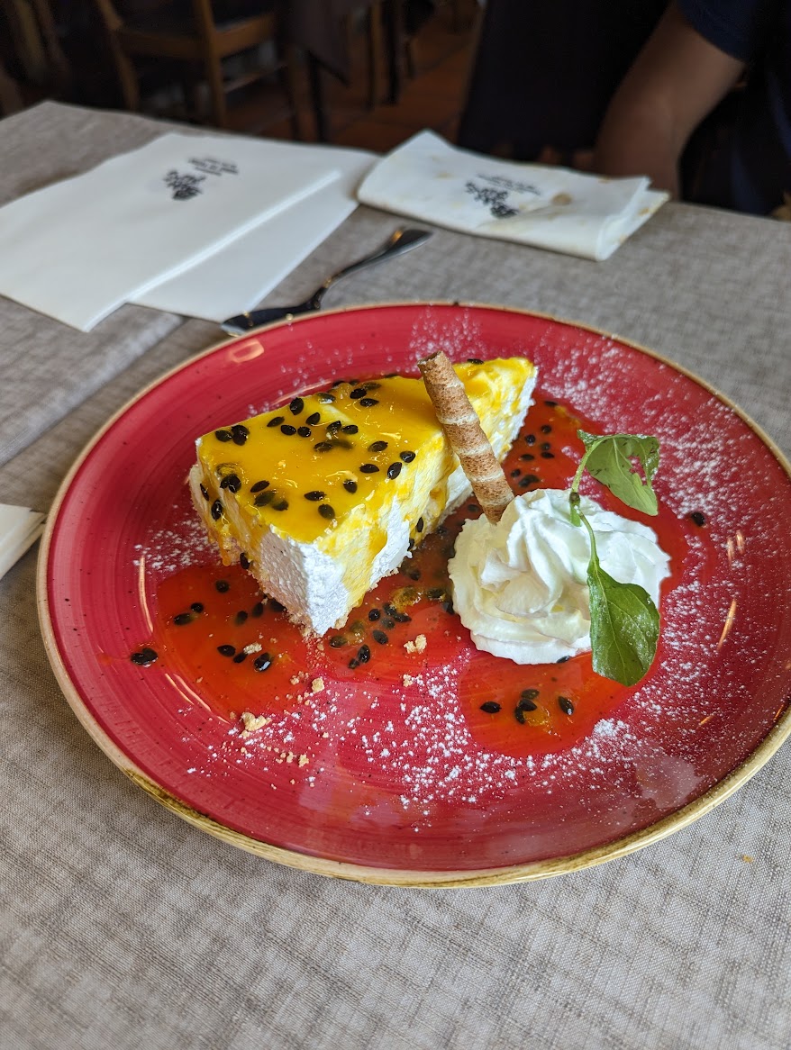 Para prato principal escolhemos picadinho – e uma dose dá MUITO bem para duas pessoas. E ambas têm de comer bem para atacar aquela travessa. O picadinho é tradicionalmente com carne de vaca, mas também pode ser de frango, temperada com alhos e louro. Existem várias receitas e nós até voltámos a comer o picadinho noutro local e os sabores eram bastante diferentes. Este ganhou. Para acabar bem a refeição foi um semifrio de maracujá. Escolhemos sempre esta sobremesa nos restaurantes que fomos nos dias seguintes, mas este, deste restaurante, foi o melhor. Não tenho de voltar a dizer – adorámos este restaurante e saímos com grandes sorrisos…e barrigas cheias.